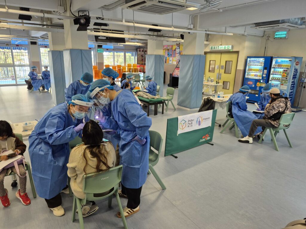 Basic dental examinations, topical fluoride application services provided by dentists and HKU dental students.